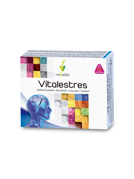 Vitalestrés de Novadiet es un complemento alimenticio que ayuda a aliviar el nerviosismo, la ansiedad y el estrés leve. Está formulado con una combinación de ingredientes naturales, como Garum (autolisado de pescado), alga Klamath, avena sativa y vitamina E. Se utiliza para apoyar al sistema nervioso y combatir las sobrecargas físicas y psíquicas.